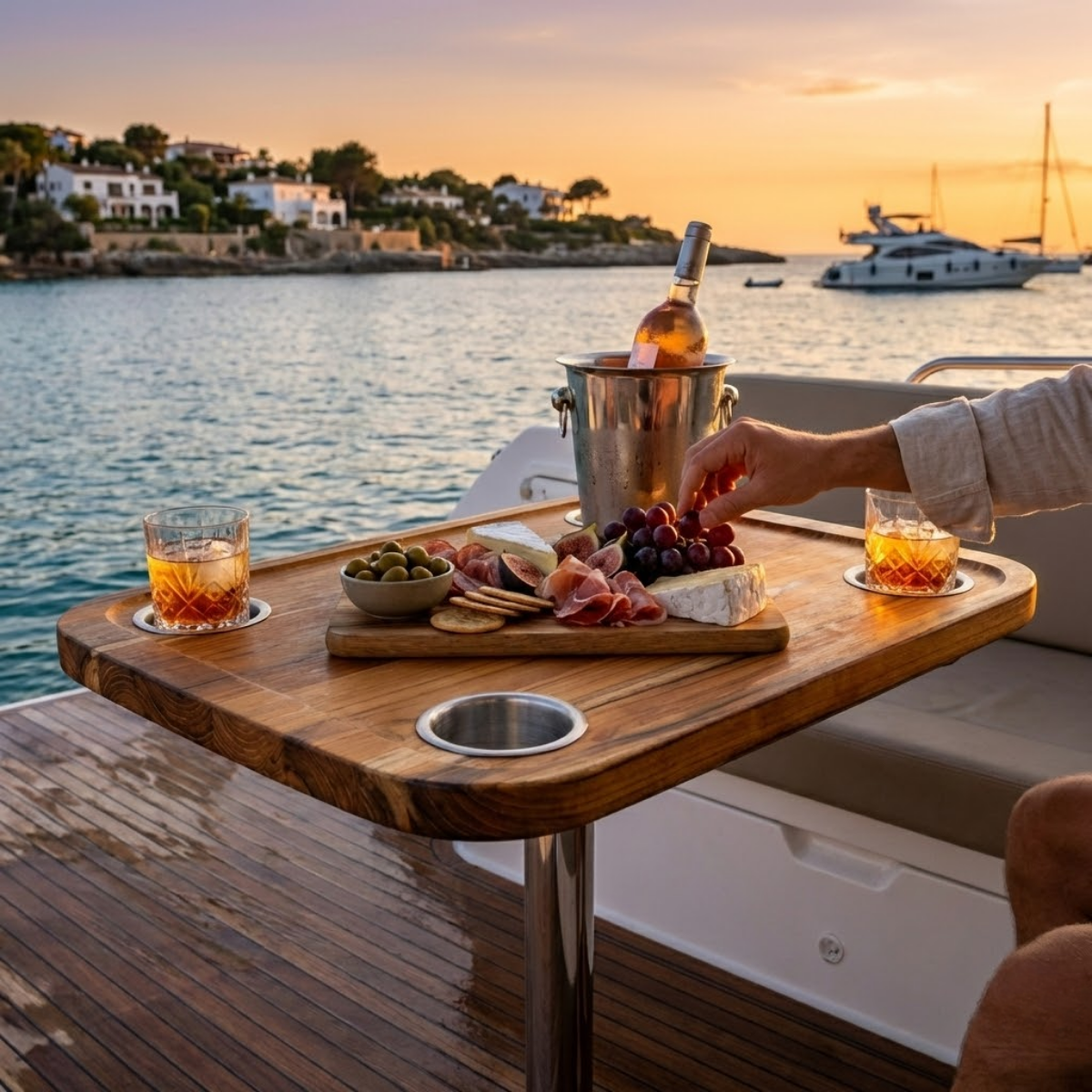 Crie o ambiente perfeito para refeições e confraternizações a bordo com a Mesa Náutica Completa da Overboat. Este não é apenas um tampo, mas um sistema completo e robusto que inclui o luxuoso tampo em Madeira Teca, o pedestal de inox, a base de fixação e 4 porta-copos embutidos. Projetada para ser o centro das atenções do seu convés, ela oferece a combinação ideal de funcionalidade e estilo.