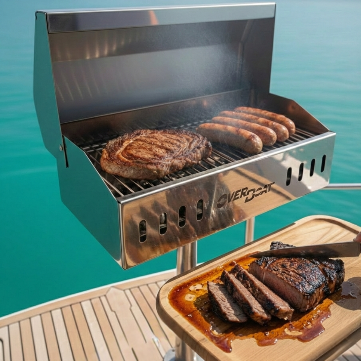 Eleve seus encontros a bordo a um novo patamar com a Estação Gourmet PTR-460 da Overboat. Este sistema completo e integrado foi projetado para oferecer a melhor experiência de churrasco no mar, e agora com ainda mais opções para combinar com sua embarcação. Além da ampla grelha retangular e do robusto pedestal em inox, você pode escolher a tábua de corte que mais lhe agrada. Fabricado com a qualidade superior do Aço Inox 304, este kit é a solução definitiva para quem busca funcionalidade, sofisticação e a conveniência de ter tudo do seu jeito.
